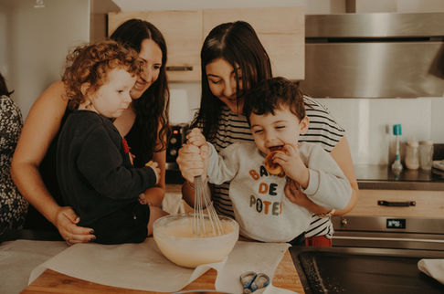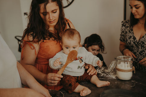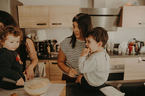 Atelier pâtisserie entre amies d'enfance et leurs enfants